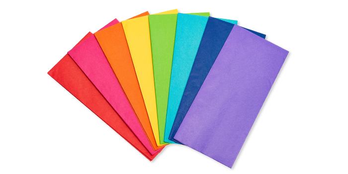 Tissue paper is a lightweight and delicate paper material often used for wrapping fragile items, adding cushioning in packaging, and for decorative purposes. It comes in various colors and is commonly used in gift wrapping and retail packaging.